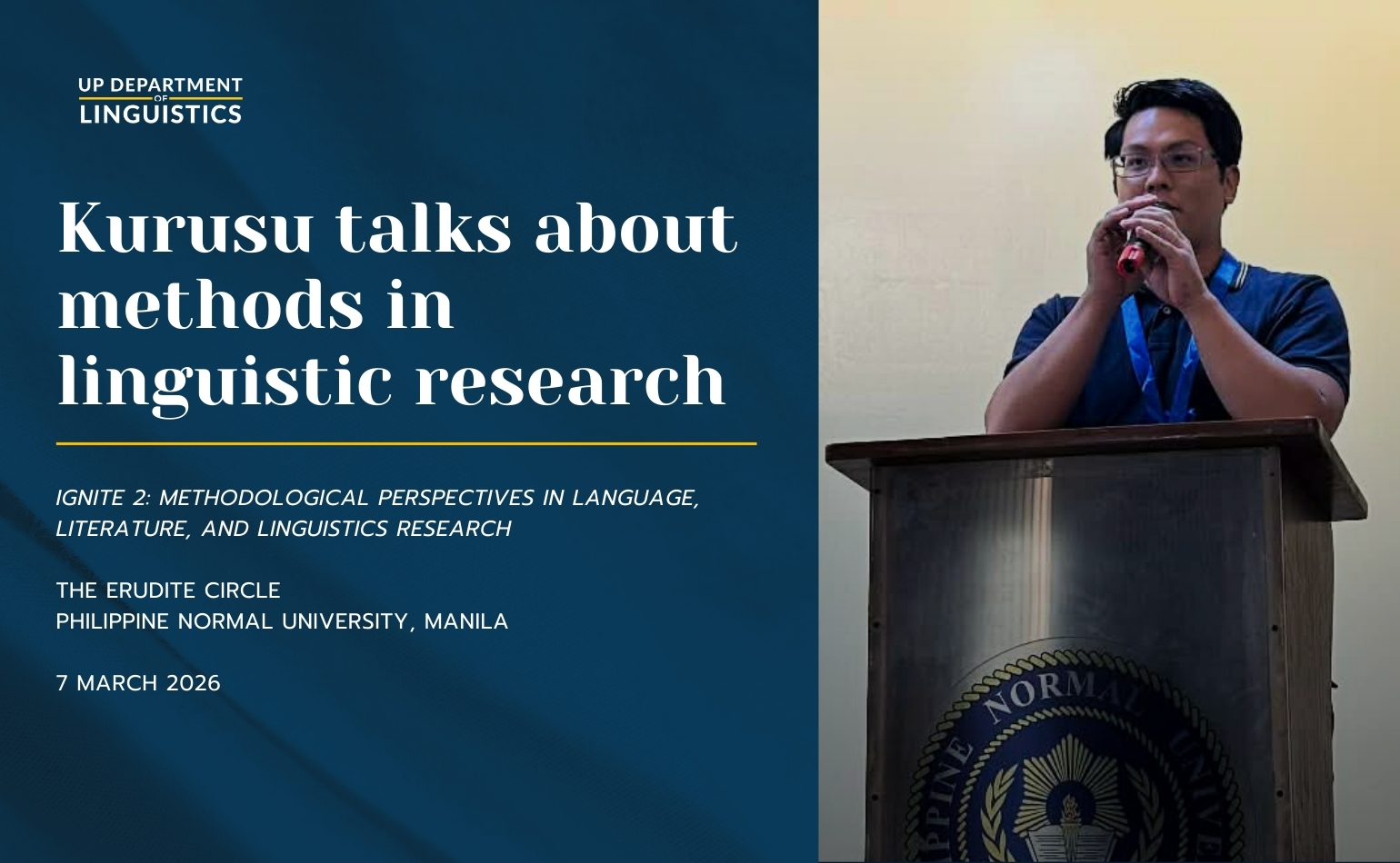 Inst. Brian Baran will present his paper, “Some Preliminary Notes on the Linguistic Variation and Orthographic Practices among the Multilingual Lawisanon of Bantayan Island,” at the Annual Conference for the Association for Reading and Writing in Asia (ARWA 2025), held at Cebu from 27 to 28 February.